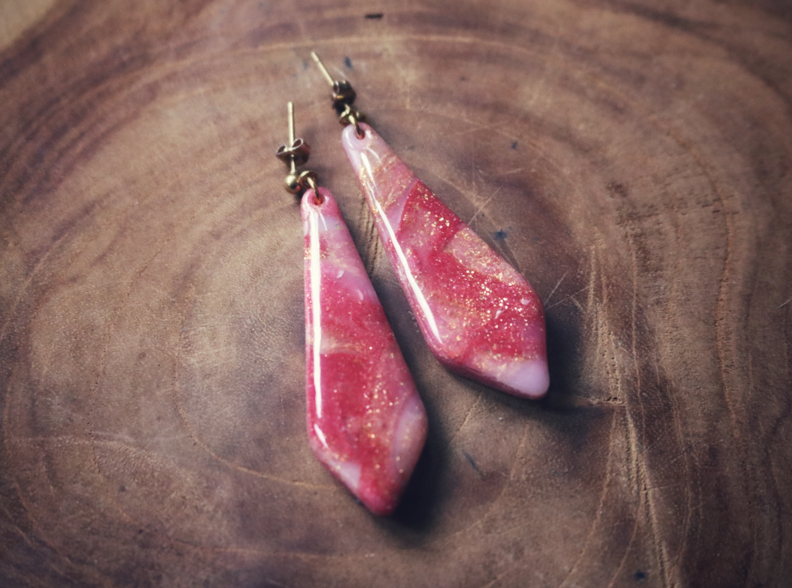 Ze zijn gemaakt van de beste kwaliteit polymeer klei en goudfolie en afgewerkt met een laagje resin zodat ze nog langer mooi blijven. De oorstekers zijn van roestvrij staal met een gouden topcoat.
