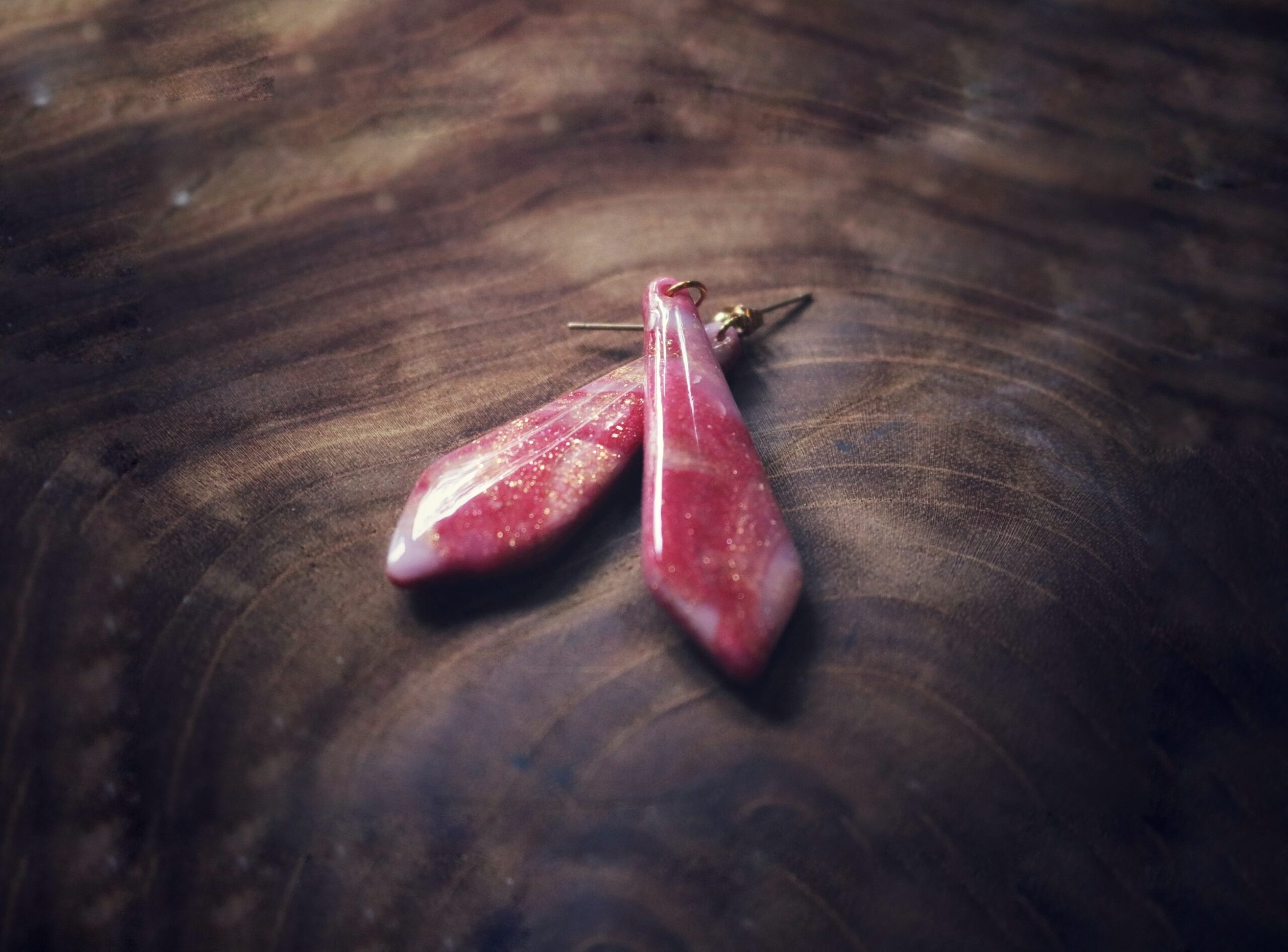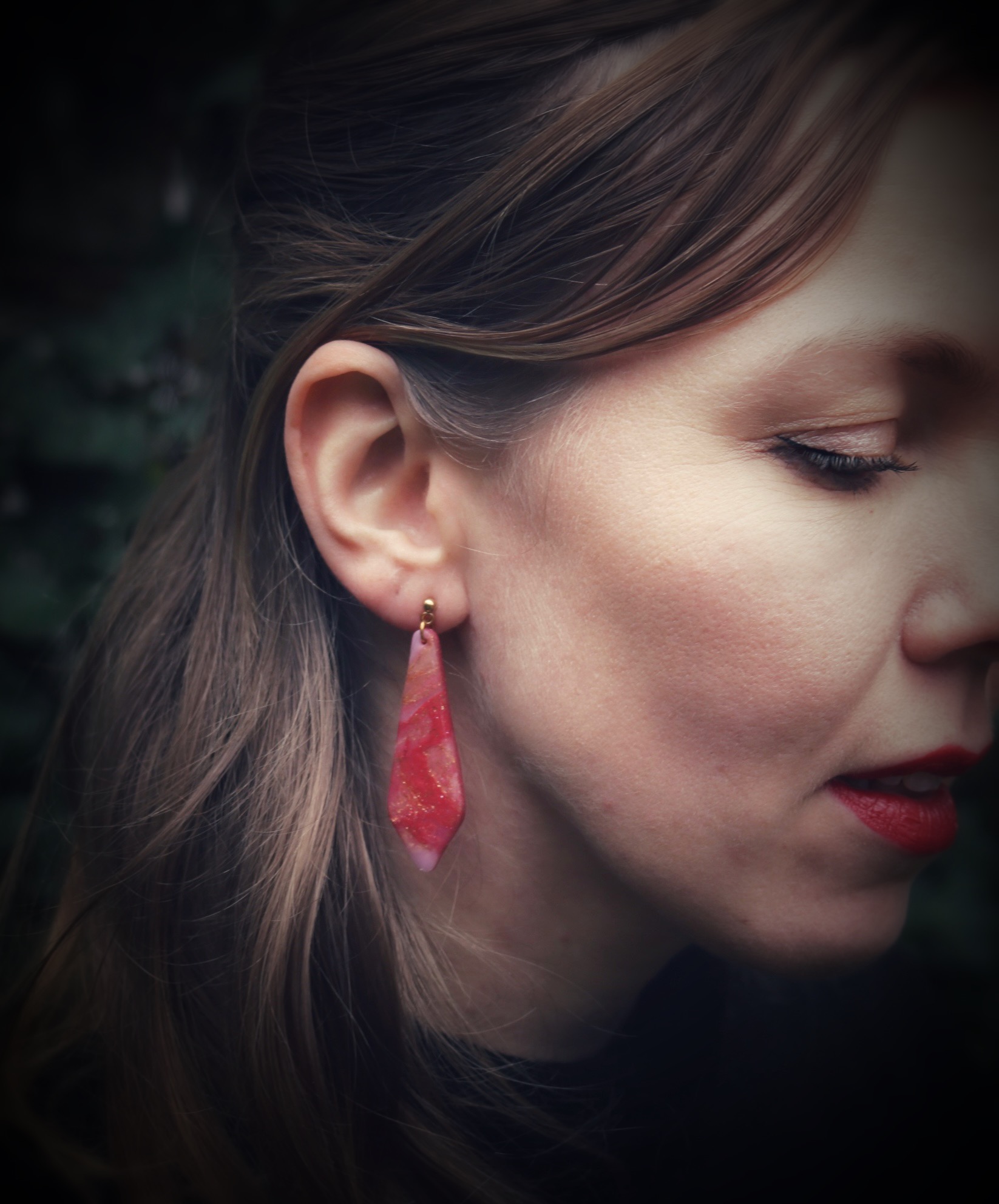 Deze oorbellen zijn onderdeel van de Marble Cherry Collection, een stijlvolle collectie met transparant-wit, donker kersenrood en goud elementen. Door de speciale Marble techniek krijgen ze een steen effect en een erg elegante uitstraling, perfect om te dragen op een feestje of naar het theater!