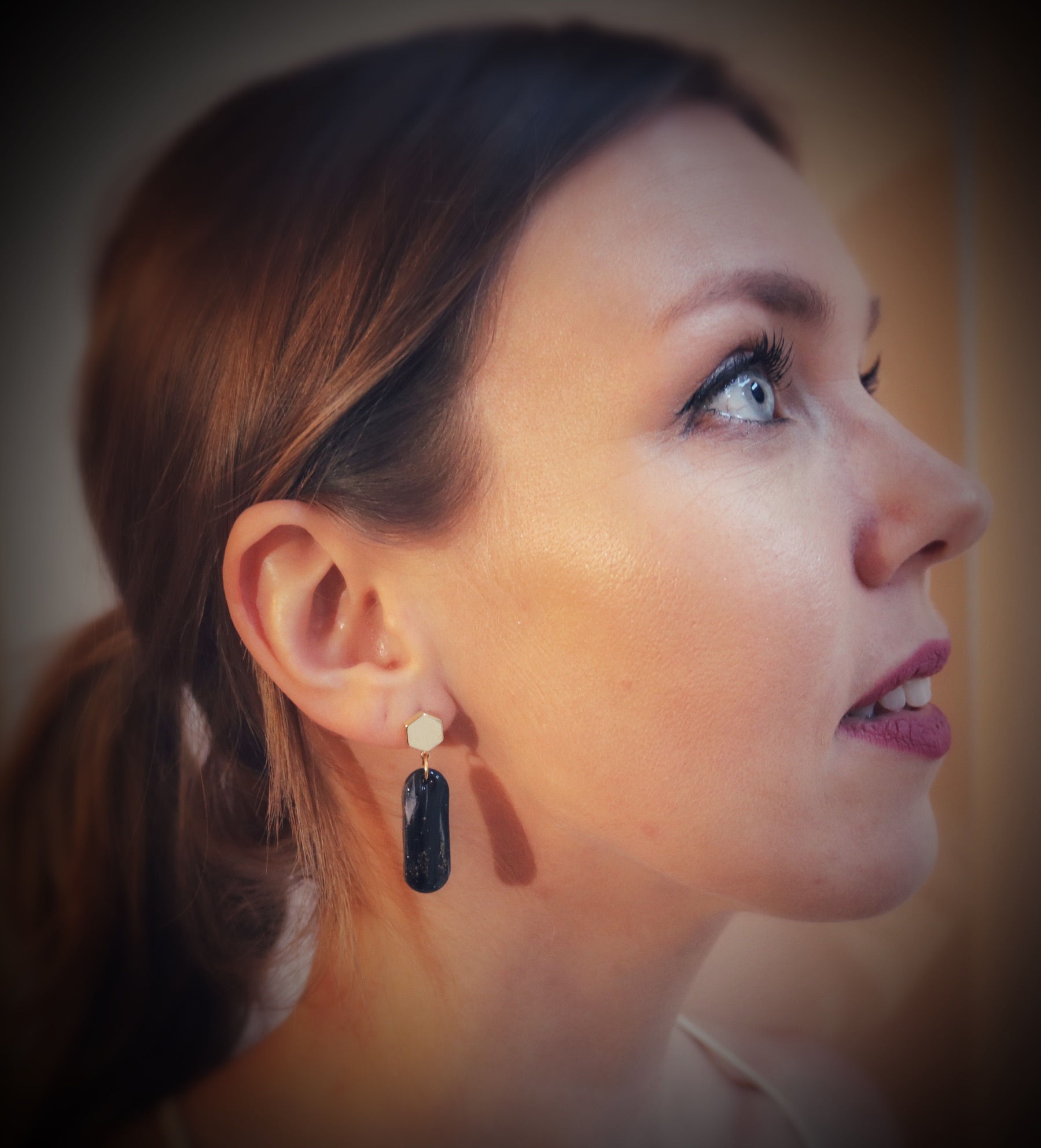 Deze oorbellen zijn onderdeel van de Marble Midnight Collection, een stijlvolle collectie met zwart, wit en goud elementen. Door de speciale Marble techniek krijgen ze een steen effect en een erg elegante uitstraling, perfect om te dragen op een feestje of naar het theater!