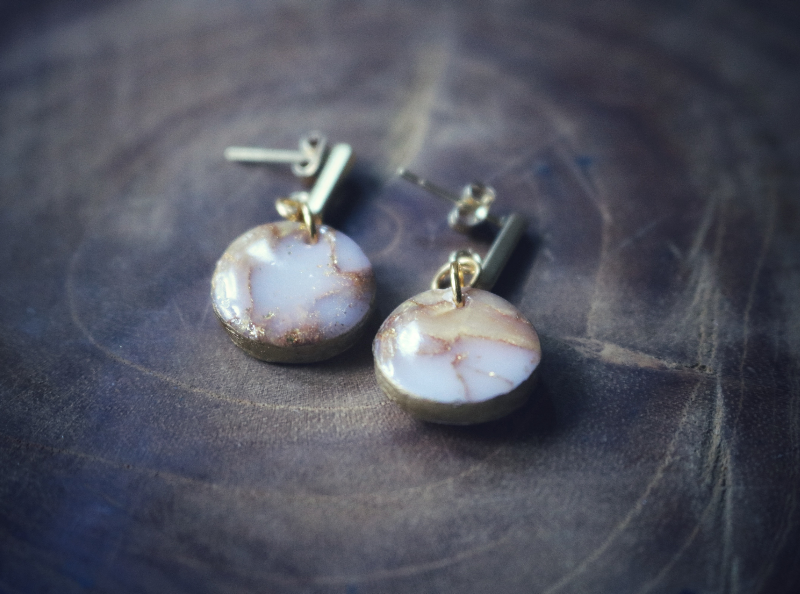 Ze zijn gemaakt van de beste kwaliteit polymeer klei en goudfolie en afgewerkt met een laagje resin zodat ze nog langer mooi blijven. De oorstekers zijn van roestvrij staal met een gouden topcoat.