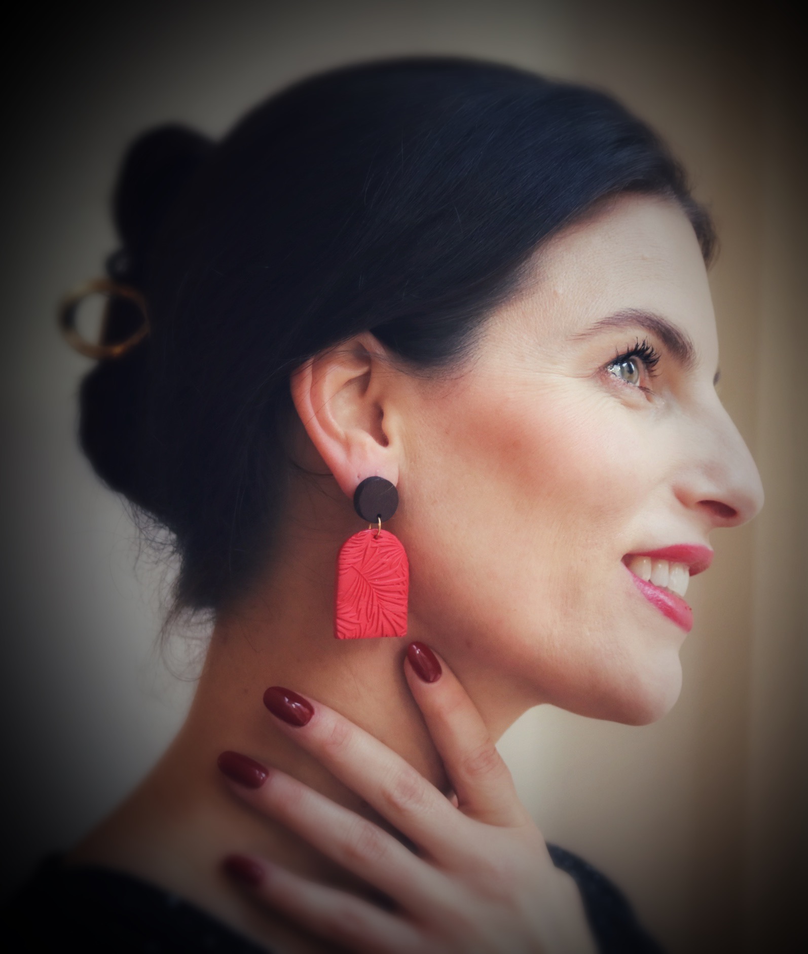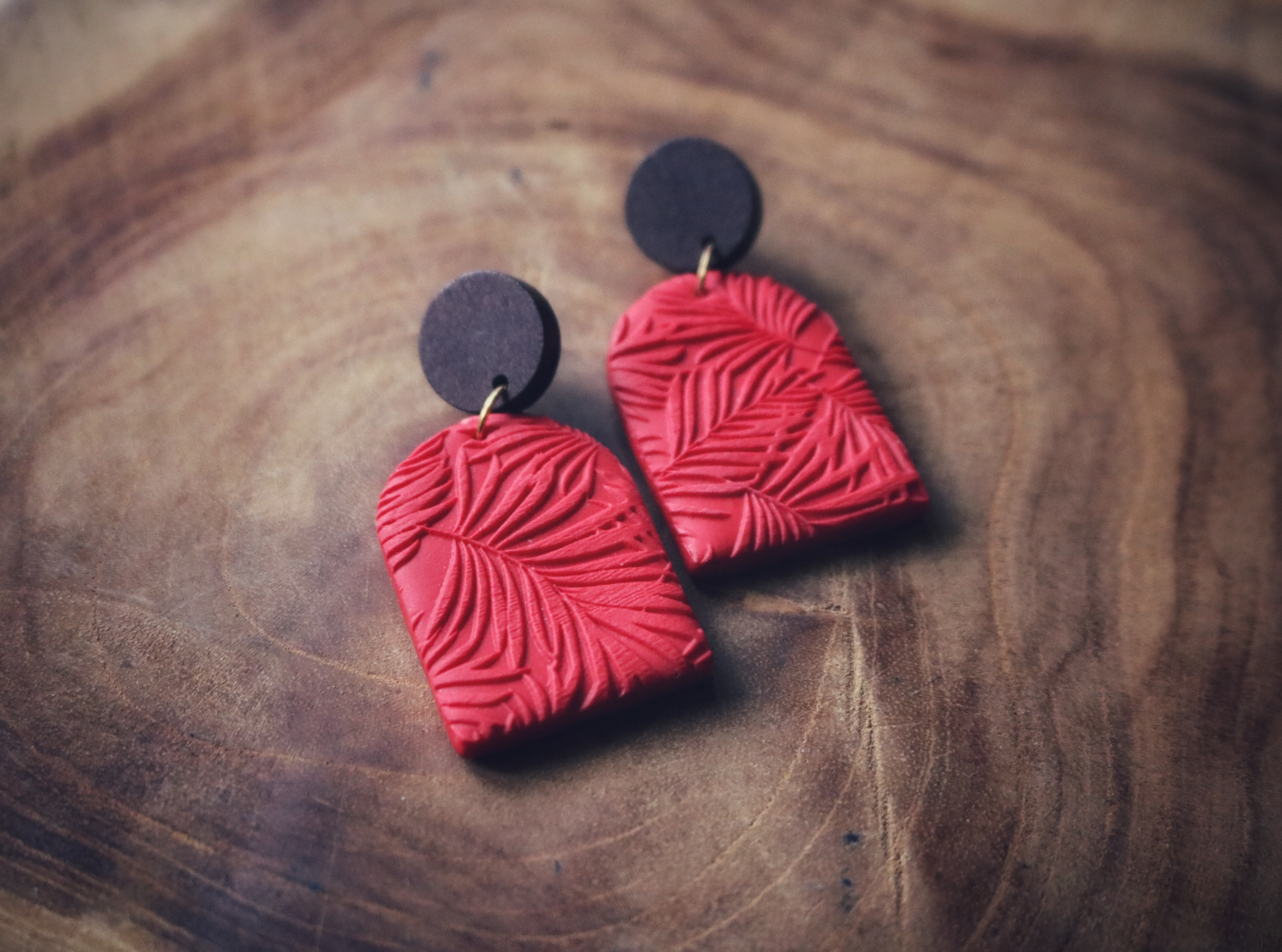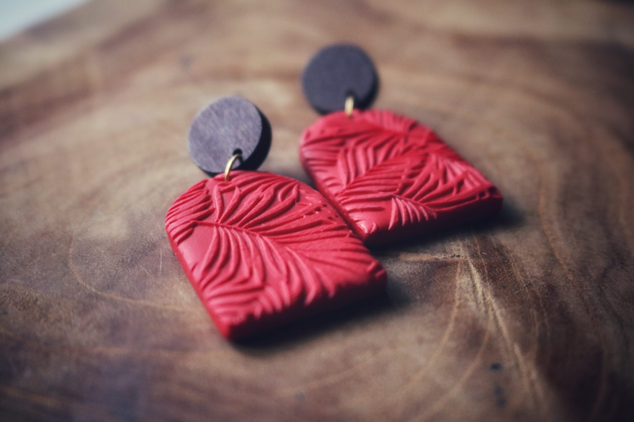 Ze zijn gemaakt van de beste kwaliteit polymeer klei, met een reliëf van bladeren en aan de achterkant afgewerkt met een laagje resin zodat ze nog langer mooi blijven. De oorbellen hebben een massief houten knop en de oorstekers zijn van roestvrij staal.