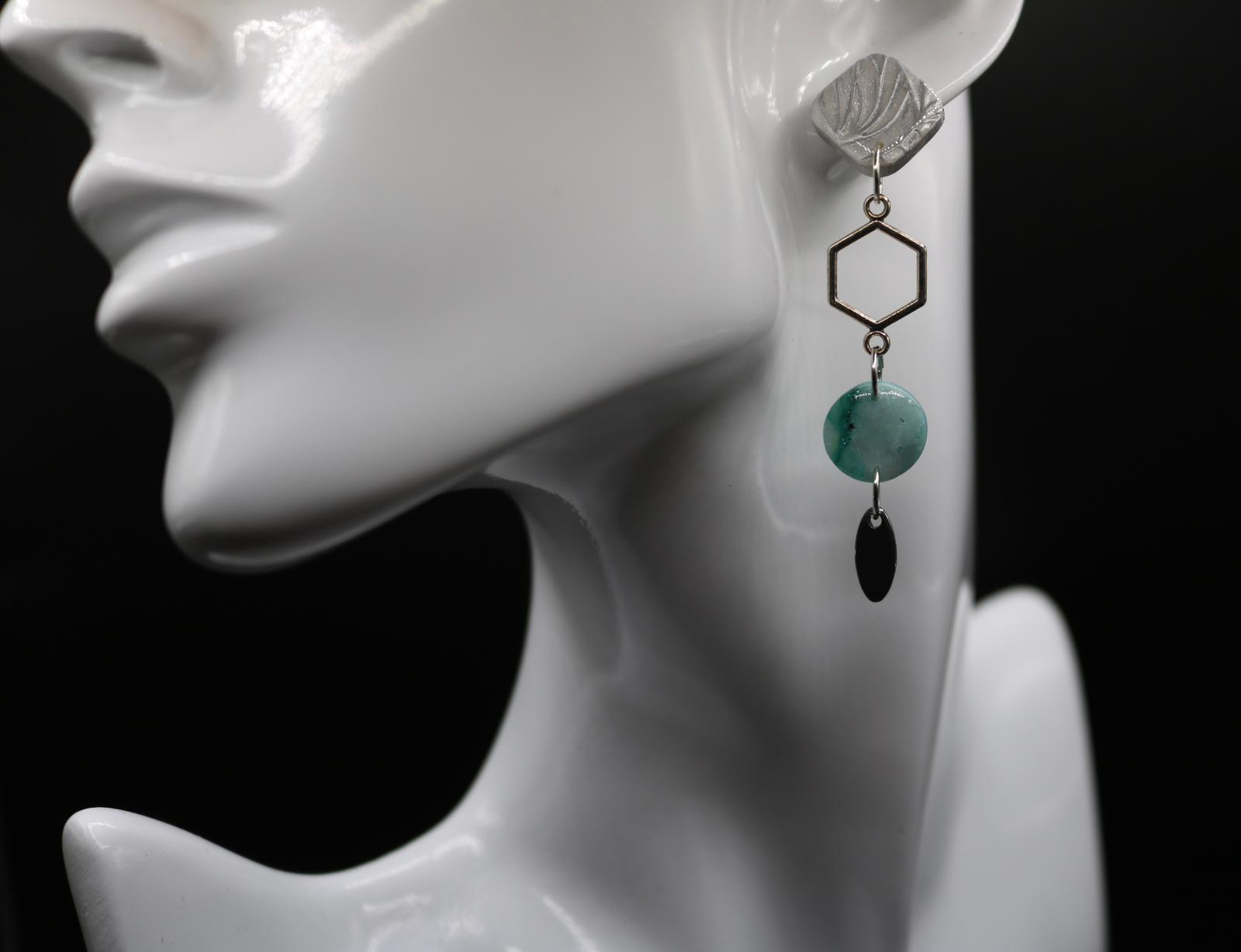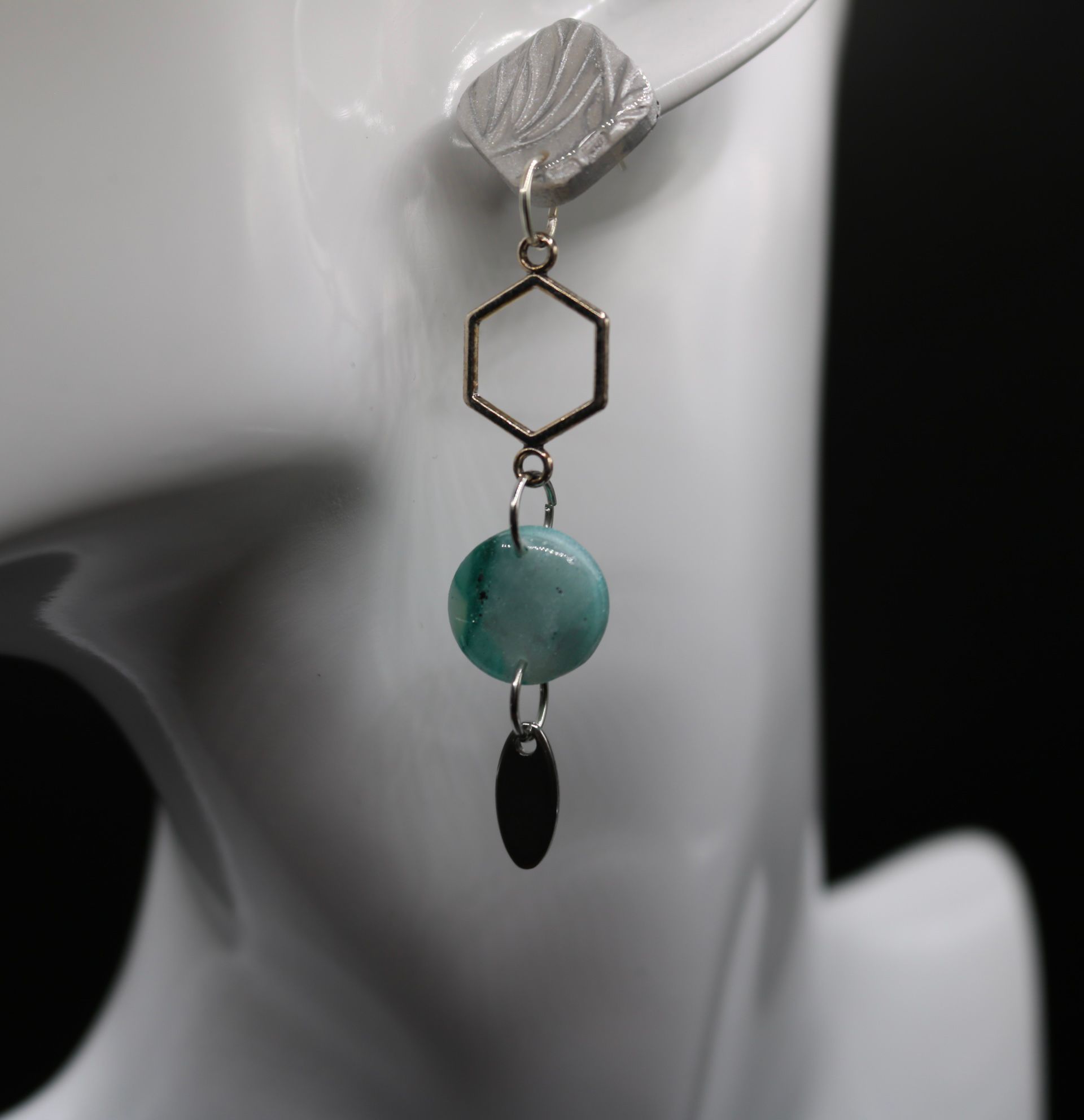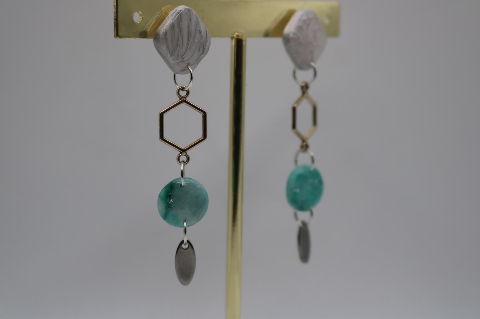 Ze zijn gemaakt van de beste kwaliteit polymeer klei en zilverfolie en afgewerkt met een laagje resin zodat ze nog langer mooi blijven. Door de speciale Marble techniek krijgen ze een steen effect en een erg elegante uitstraling. De oorstekers zijn van roestvrij staal met een zilveren topcoat.